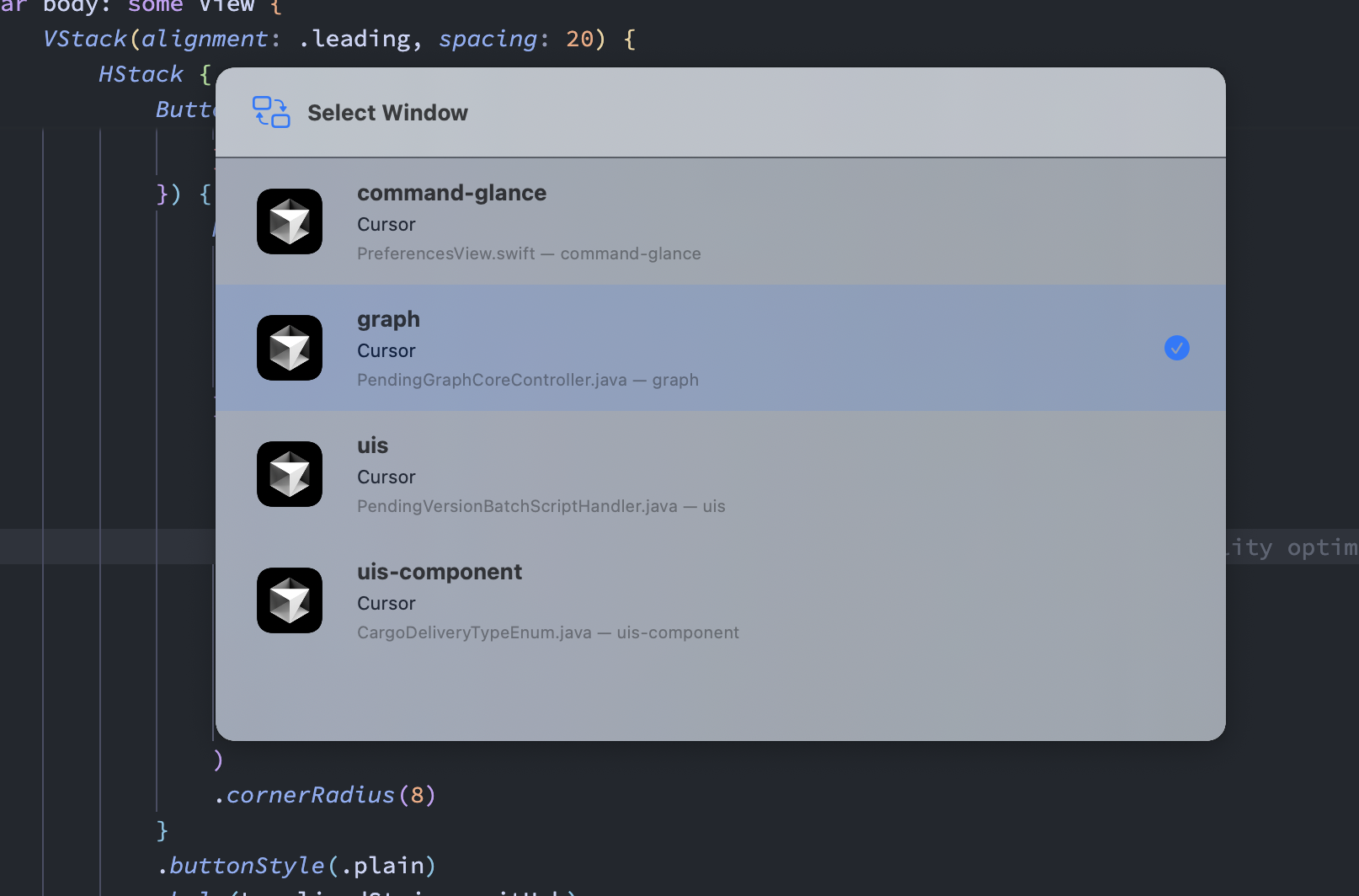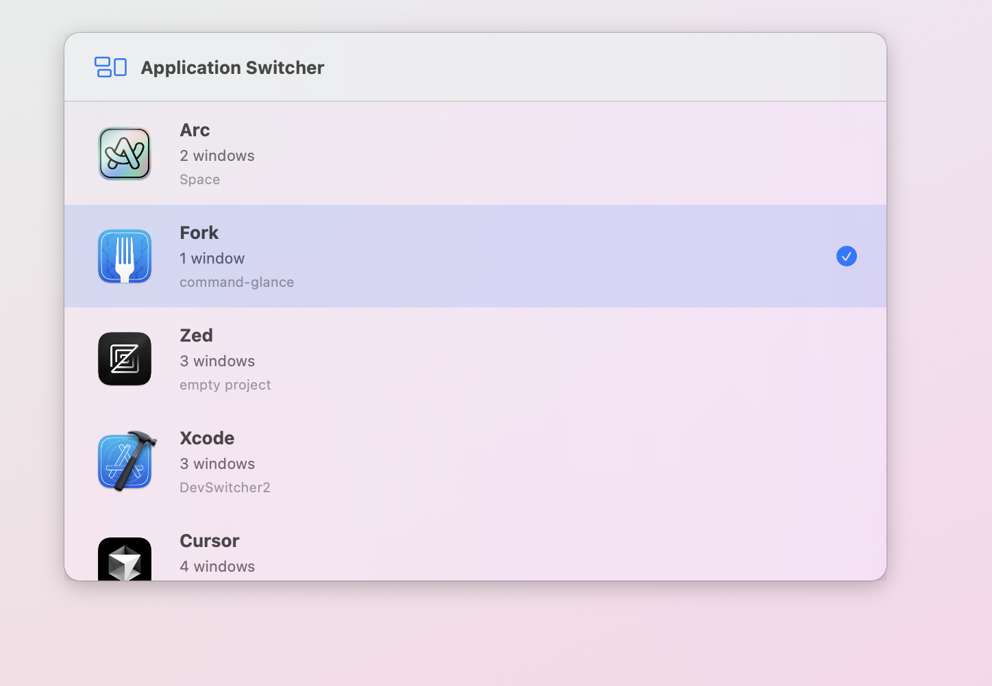 自动识别 Xcode 项目、VSCode 工作区等,告别混乱的窗口标题。支持在偏好设置中自定义识别规则。